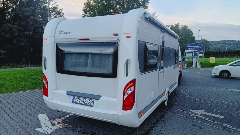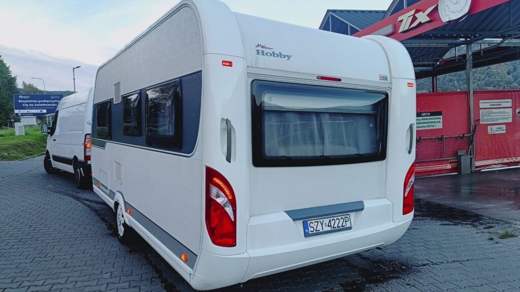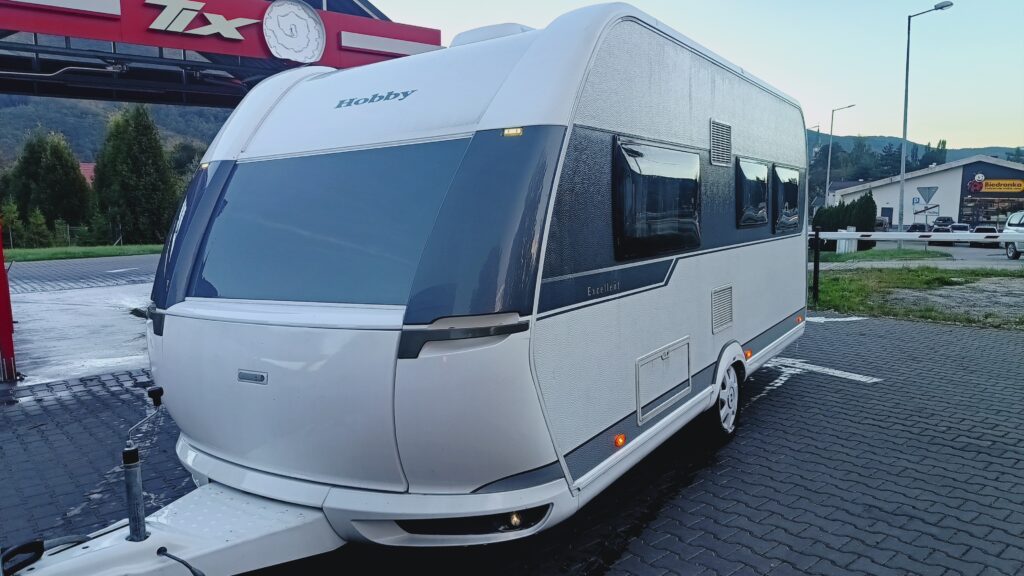 Przyczepa kempingowa niemieckiej marki HOBBY, typ 495 EXCELLENT, rok prod. 2013, data pierwszej rejestracji 2014, sprowadzona z DANII, już zarejestrowana w kraju, bardzo ładna, wnętrze w perfekcyjnym stanie, szafki, blaty bez oznak użytkowania, 4/5 osobowa, posiada dwa osobne miejsca do spania, w tym sypialnię zamykaną drzwiami z łożem małżeńskim i toaletką z lustrem oraz salon w tzw. podkowę z możliwością rozłożenia na spanie, ława, szafa, szafki, schowki,