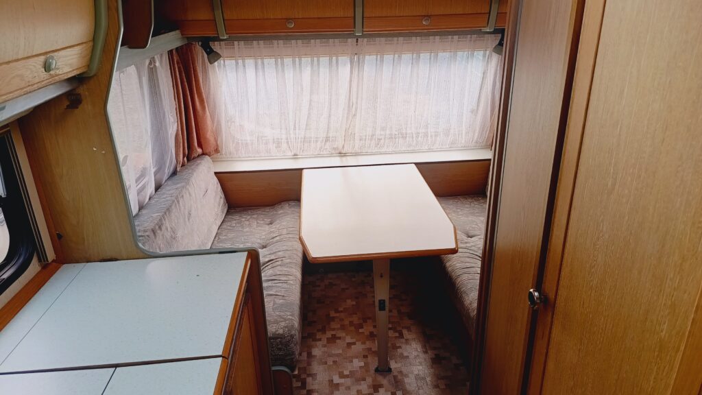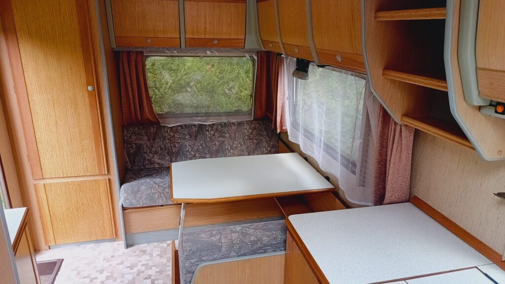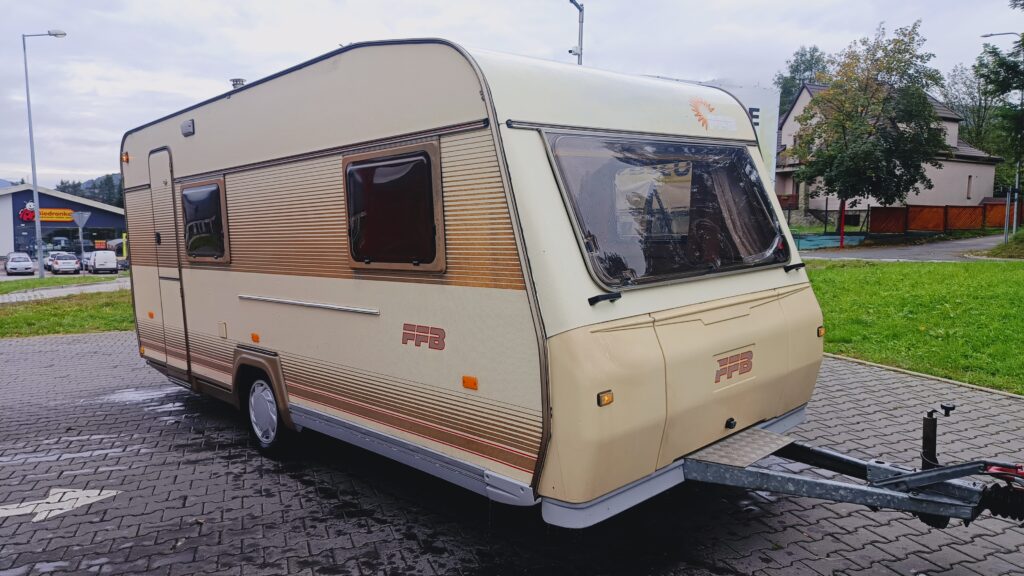 Przyczepa kempingowa niemieckiej marki TABBERT, rok 91, sprowadzona z Danii, w trakcie rejestracji w kraju, fajna i niedroga, 4 osobowa, posiada dwa osobne miejsca do spania, w tym jedno zamykane drzwiami drewnianymi, dwie ławy, szafa, szafki, schowki,