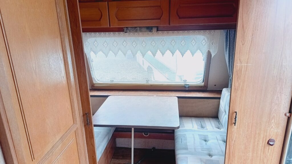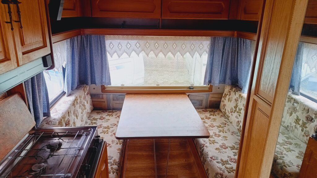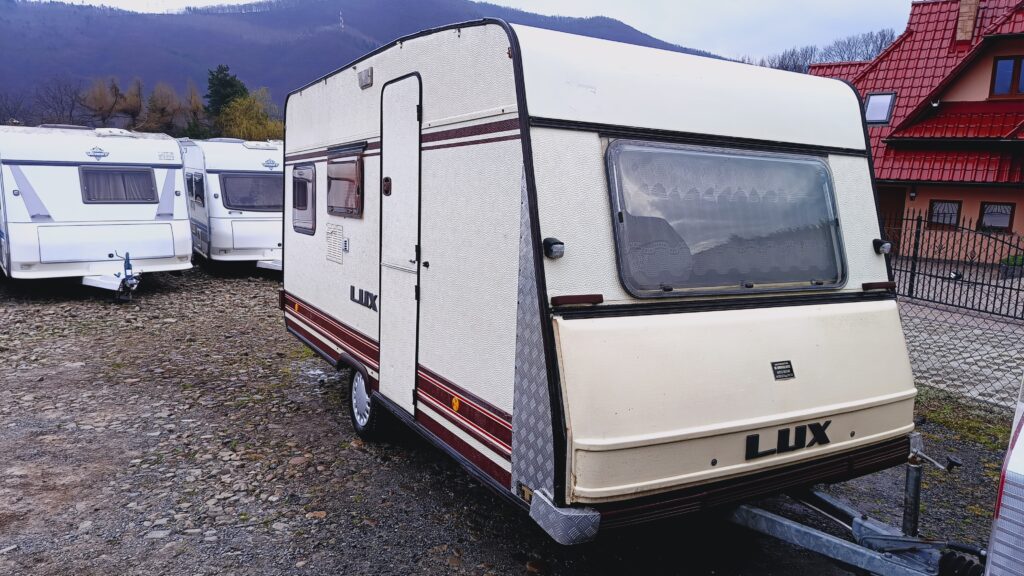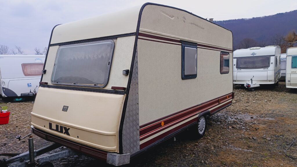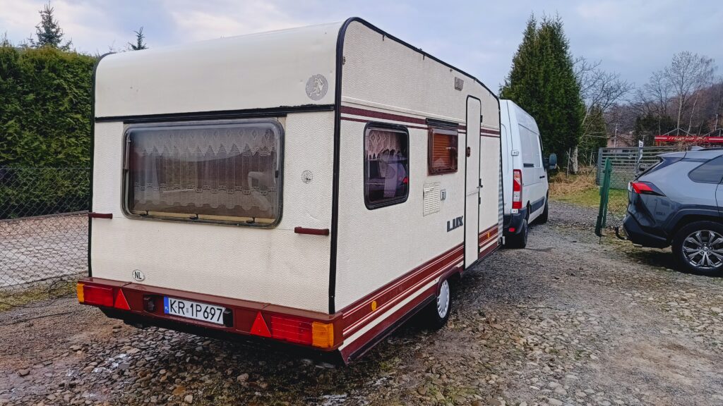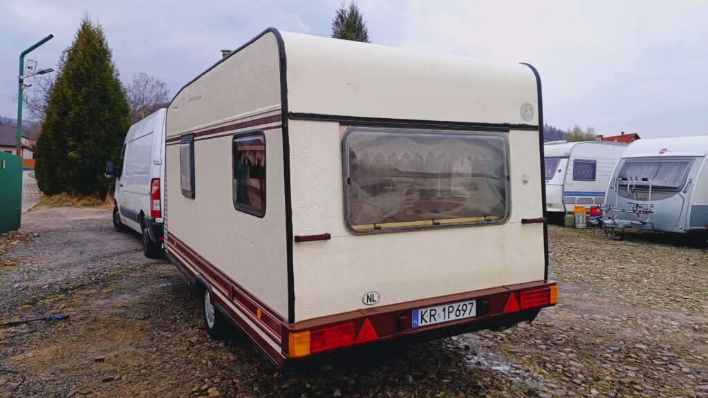 Przyczepa kempingowa niemieckiej marki BUERSTNER, zarejestrowana w kraju, rok 85, fajna i niedroga, 4 osobowa, posiada dwa osobne miejsca do spania, w tym jedno zamykane drzwiami drewnianymi, dwie ławy, szafa, szafki, schowki,