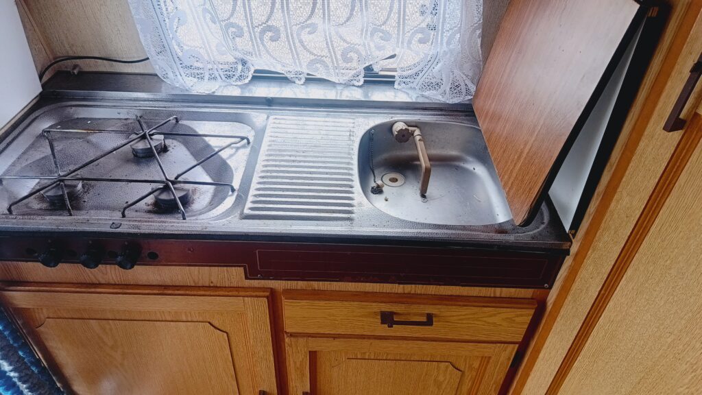 na wyposażeniu lodówka, zlewozmywak, kuchenka gazowa, ogrzewanie gazowe, zbiornik z pompą , instalacja antenowa, radio, głośniki,