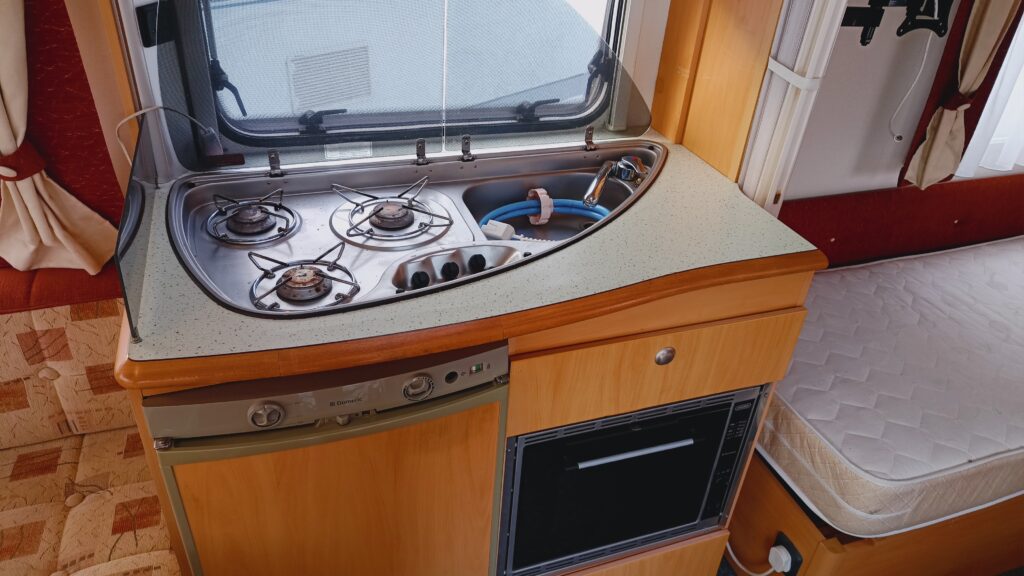 na wyposażeniu lodówka, zlewozmywak, kuchenka gazowa, ogrzewanie gazowe, ogrzewanie elektryczne, instalacja 12/230V, solar z akumulatorem, instalacja tv z masztem i anteną, radio, głośniki, zbiornik z pompą wody, podgrzewacz wody gazowo-elektryczny, zbiornik na wodę szarą, piekarnik, mikrofalówka, MOVER – urządzenie do przemieszczania przyczepy sterowane pilotem, w oknach rolety i moskitiery, moskitiera drzwiowa, okno dachowe panoramiczne, alufelgi, stabilizator jazdy, czujnik gazu, gaśnica, hamulec najazdowy, koło manewrowe i inne,