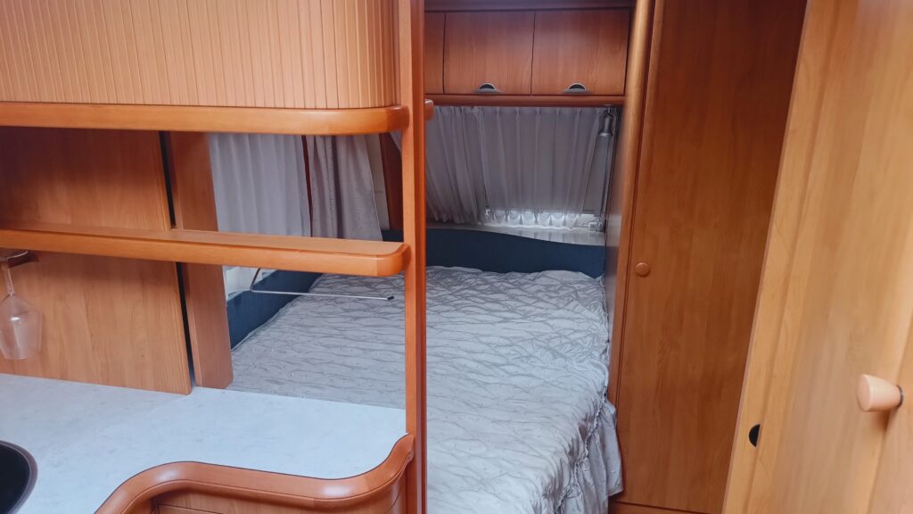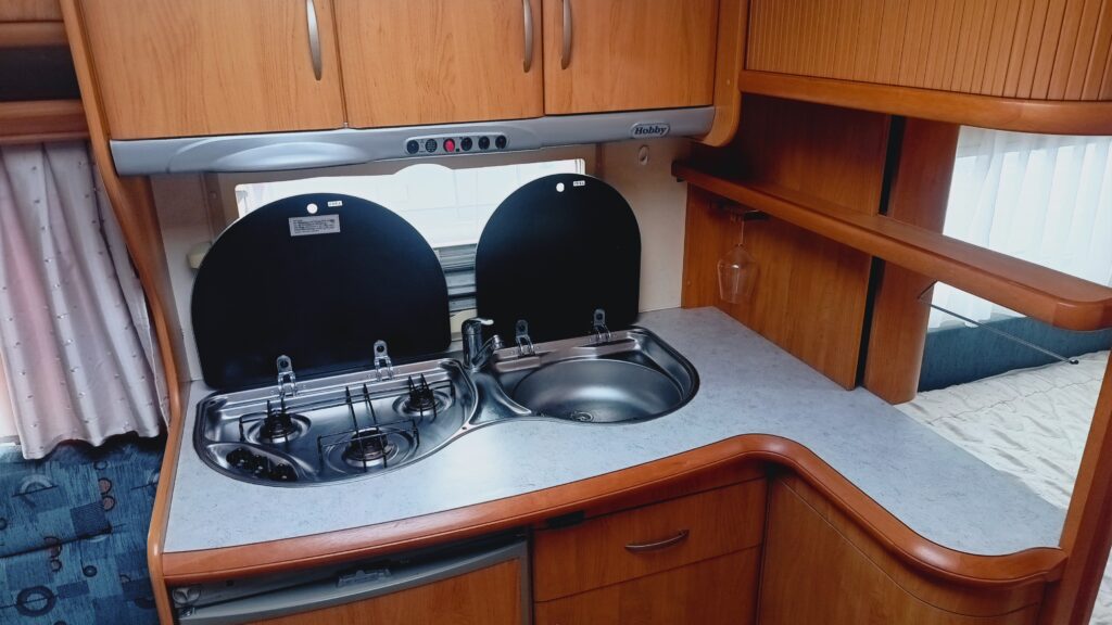 na wyposażeniu lodówka, zlewozmywak, kuchenka gazowa, ogrzewanie gazowe, instalacja 12/230V, podpięcie do akumulatora, akumulator, przetwornica 12/230V, zbiornik z pompą wody, podgrzewacz wody, MOVER – RZĄDZENIE DO PRZEMIESZCZANIA PRZYCZEPY ZA POMOCĄ PILOTA, okna całe, w oknach rolety i moskitiery, kotki drzwiowe, okno dachowe panoramiczne, SOLAR DACHOWY, alufelgi, drabina rewizyjna, butla gazowa, stabilizator jazdy, hamulec najazdowy, koło manewrowe i inne,