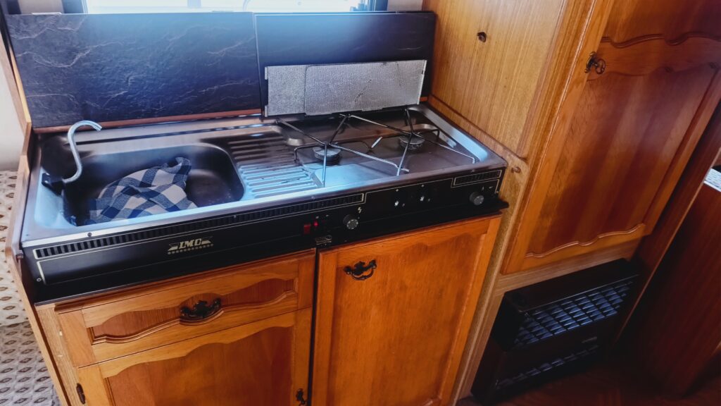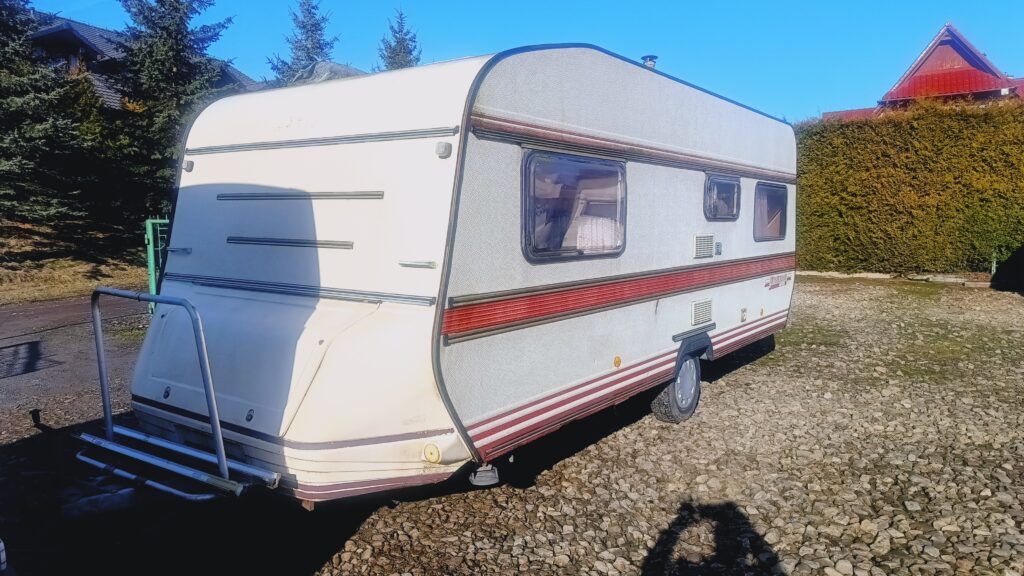 na wyposażeniu lodówka, zlewozmywak, kuchenka gazowa, ogrzewanie gazowe, instalacja 12/230v, zbiornik z pompą wody, okna całe, w oknach rolety i moskitiery, instalacja tv z telewizorem, hamulec najazdowy, koło manewrowe i inne,