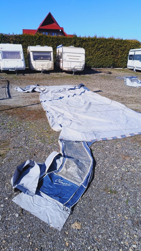Przedsionek do przyczepy kempingowej znanej marki ISABELLA COMMODORE, stosowany był w przyczepie 620cm, długość po obwodzie 1050 + fartuchy, czyli 16/17, w komplecie śledzie, stelaż, dodatkowo parawan oraz zadaszenie dodatkowe, fartuchy, do kompletu dokładam pomieszczenie gospodarcze isabella ze stelażem, cena za całość,