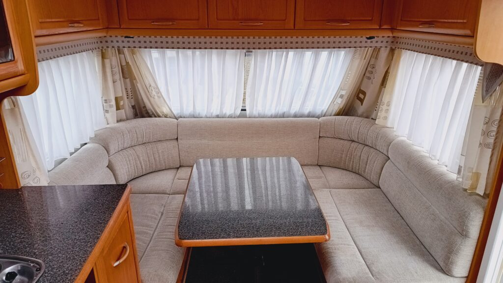 na wyposażeniu lodówka, zlewozmywak, kuchenka gazowa, ogrzewanie gazowe, instalacja 12/230V, zbiornik wody z pompą wody, podgrzewacz wody, instalacja tv z masztem i anteną, okna całe, w oknach rolety i moskitiery, moskitiera drzwiowa, okno dachowe panoramiczne, alufelgi, MOVER- urządzenie do przemieszczania przyczepy za pomocą pilota, akumulator, stopień wejściowy, stabilizator jazdy, hamulec najazdowy, koło manewrowe i inne,